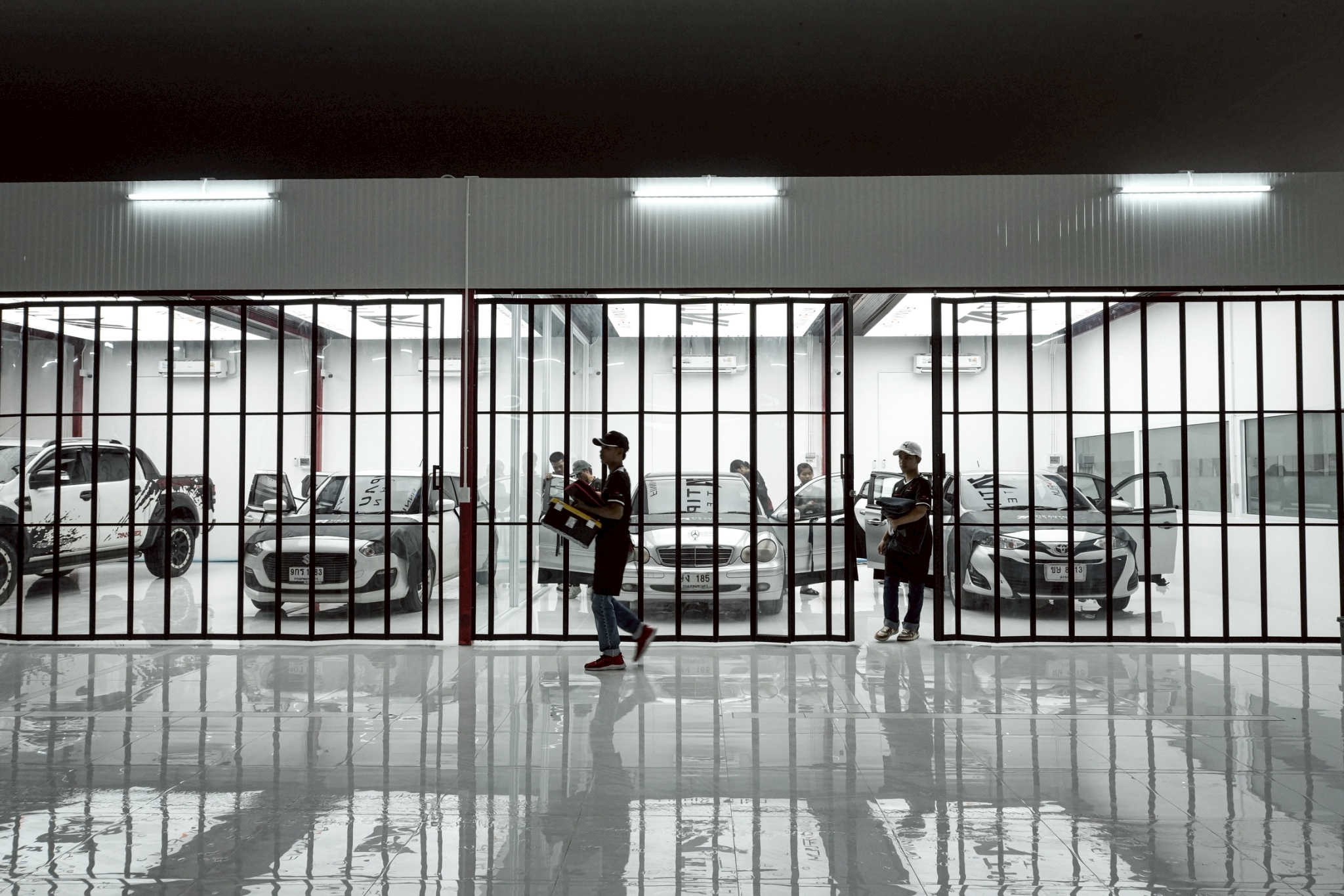 ห้องติดแอร์ช่วยควบคุมอุณหภูมิและลดลมรบกวน ทำให้ช่างทำงานได้อย่างใจเย็น มีสมาธิ และรีดน้ำได้อย่างแม่นยำ ส่งผลให้ฟิล์มยึดติดกับกระจกได้ดีและมีอายุการใช้งานยาวนานขึ้น
